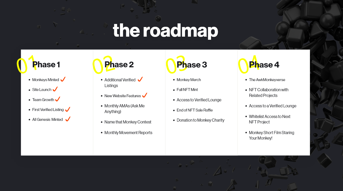 Awk Monks are a collection of 8,888 awkward monkeys, each with unique and extraordinary characteristics, monkeying around and thriving on the Solana blockchain. They may be awkward NFT monkeys but they are confident and assured of their own self-worth awkwardly making a life of it out there in the wild and strange jungles of the Solana Blockchain.